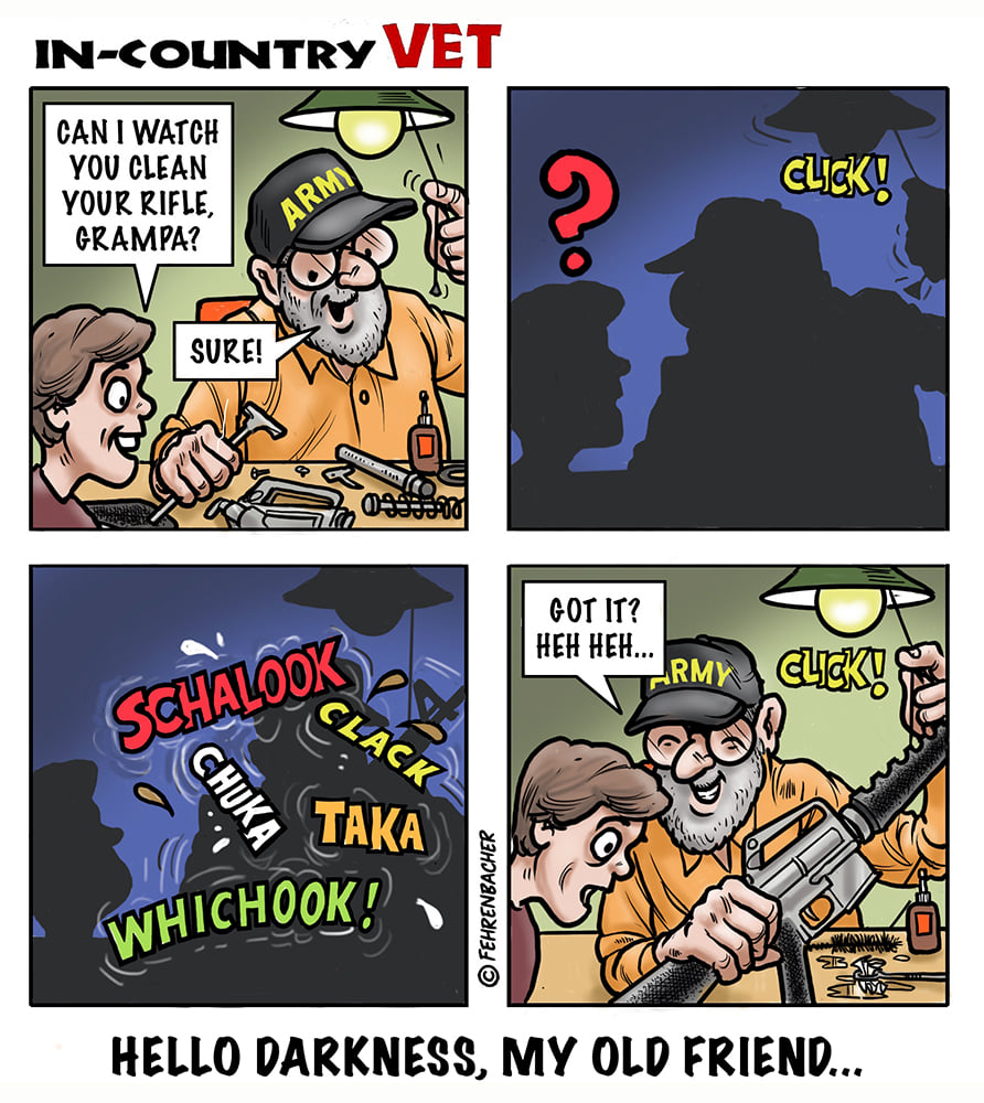 Phil enlisted in the Army in 1965 where he served for years in Vietnam. He became a graphic designer and has worked for the state of Oregon for 26 years. He retired in 2003 and started the Cartoon "In-Country". The cartoons reflect his experiences during his tour of duty in South Vietnam.