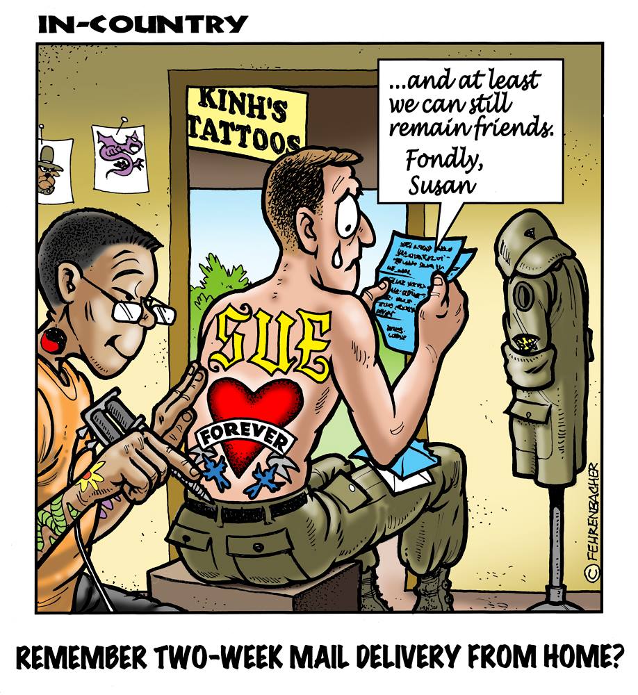 Phil enlisted in the Army in 1965 where he served for years in Vietnam. He became a graphic designer and has worked for the state of Oregon for 26 years. He retired in 2003 and started the Cartoon "In-Country". The cartoons reflect his experiences during his tour of duty in South Vietnam.